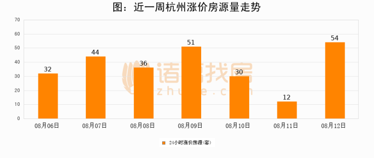 根据诸葛找房数据显示,杭州24小时涨价房源量为54套,较08月11日增加42套,环比上涨350%。与此同时,涨价房源占比小幅扩大,业主信心有所提升。