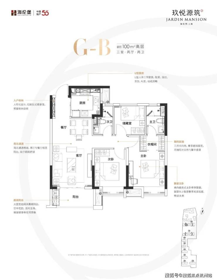 约100㎡的3房2卫户型,三开间朝南,主卧套房设计,几乎做到了市面上3房2卫户型能做到的所有优势。