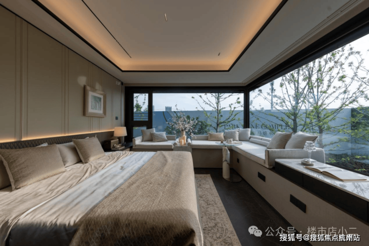 2# 号楼的边套主卧户型配置 270° 环幕飘窗,不仅延伸空间尺度,更将水岸、园景 “框” 成私藏壁画。晨间,阳光透过飘窗铺满床榻;深夜,枕着河风与月光入眠,这是专属建面约 165㎡的 “观景特权”