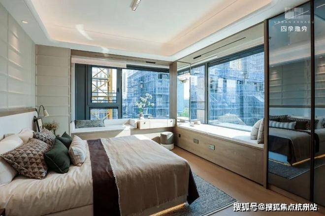 边套的餐厅、主卧和次卧,设置有多个270°全景飘窗,室内通透明亮。