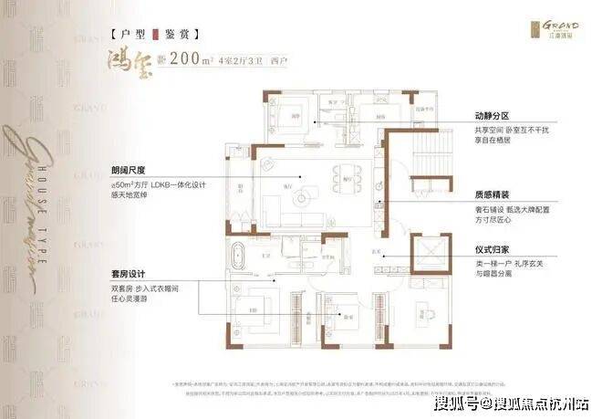 项目总共32套房源,两梯两户配置,户型为建面约200㎡4房3卫大平层