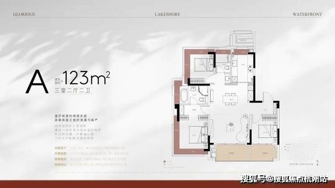 小高层:建面约123㎡三房两厅两卫,客厅面宽4.5米,270°转角飘窗设计9