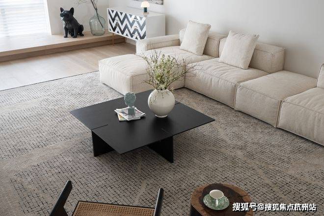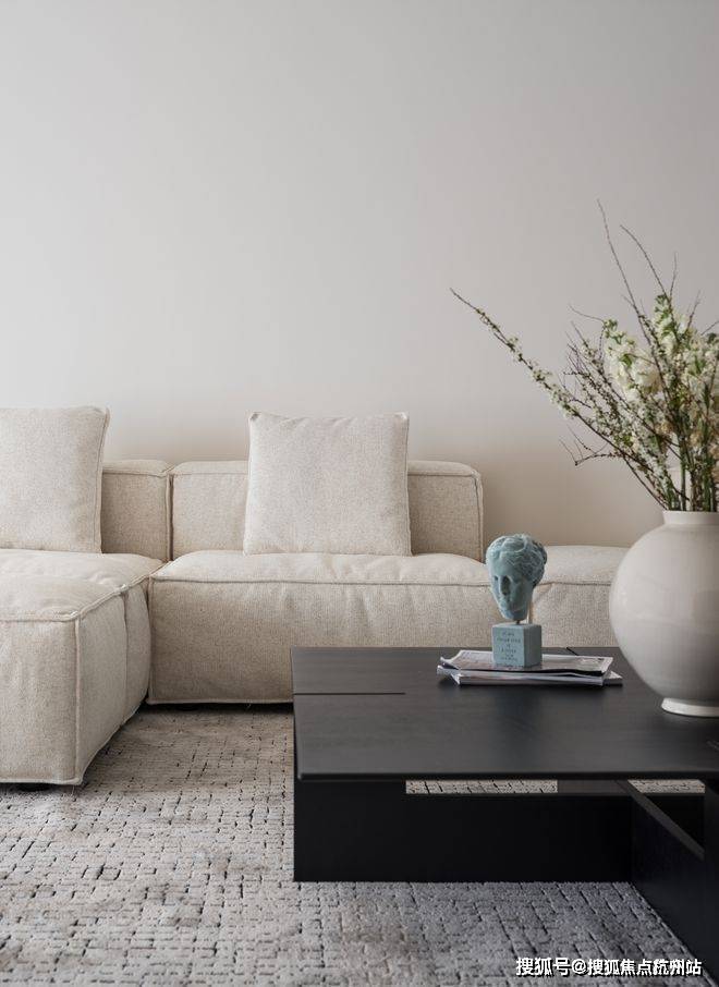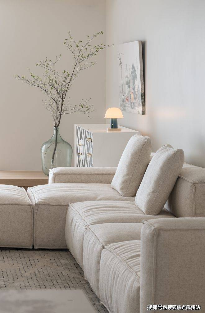 留白的空间配以装饰画与艺术品,丰富了空间的想象力和延伸感。客厅串联起节奏分明的生活动线,自然质感的选材蕴含着深层次的生命力。