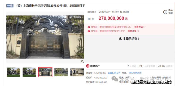 随后,上海市区又1栋百年老洋房将拍卖,起拍价1.5亿,起拍单价超过43万/㎡,土地面积848.75㎡。