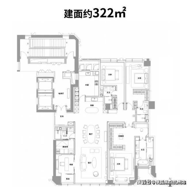 以建面约322户型为例: