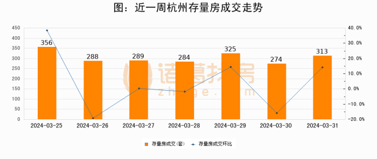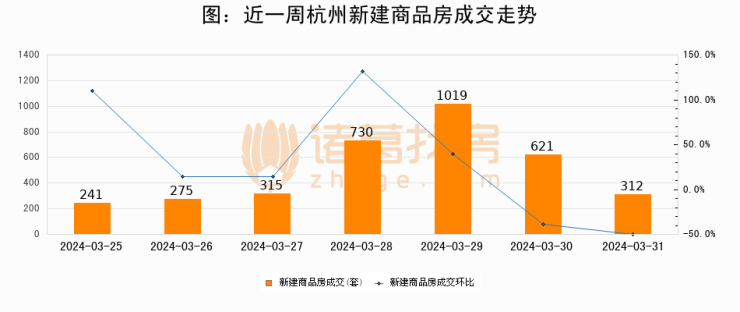 【杭州成交日报】03月31日新房成交312套、二手房313套;涨价房源111套