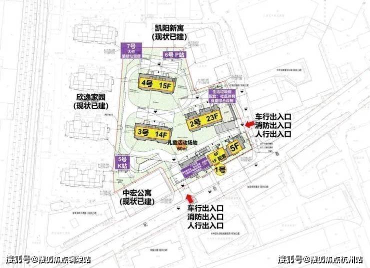2号楼23层高层,3号楼14层,4号楼15层,2号楼的东北角是生活垃圾房,社区体育配套,食堂综合设施;