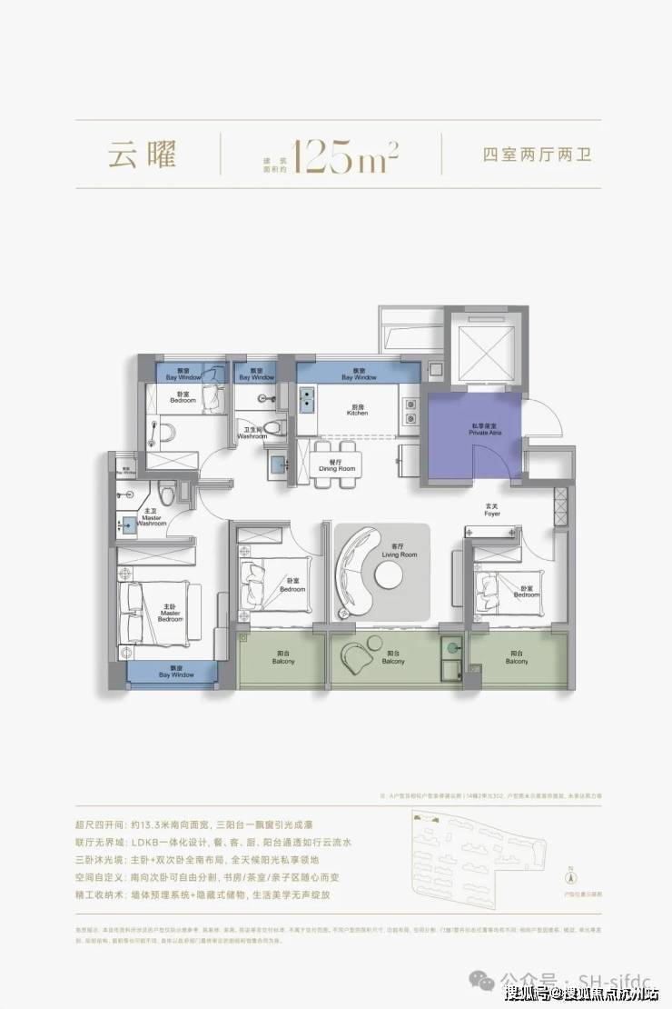 三阳台分区功能:创新三阳台设计,各司其职,解决生活痛点,提升品质。270 度无柱景观飘窗(边套专属):大幅拓展空间与视野,采光通透感拉满。一梯一户配置:私享阳光梯厅,增加隐形使用面积,兼具收纳、私密性与仪式感,给予豪宅级居住体验。