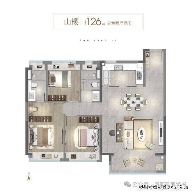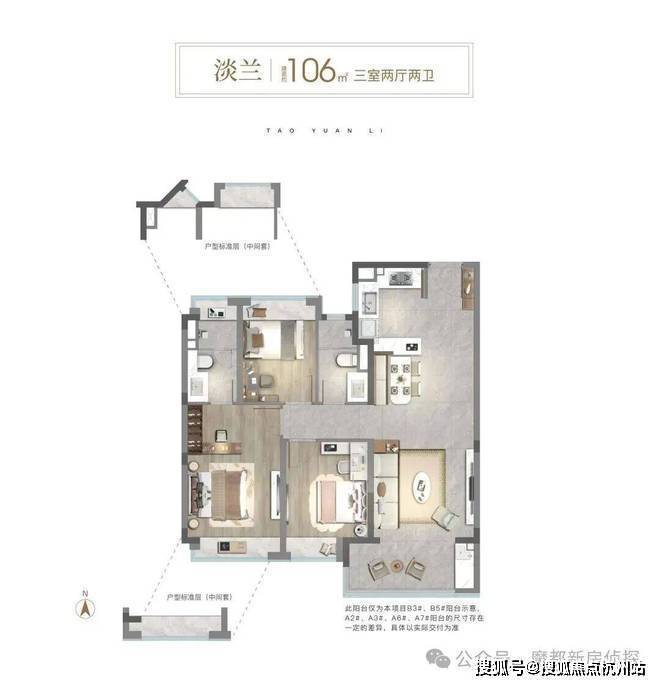 106㎡3房则做到“真三房”,不是市面的“2+1”,而是每个房间都能做卧室;约3.45米客厅面宽、开放式可视厨房、南向大阳台,让家庭公共活动空间更显开阔。