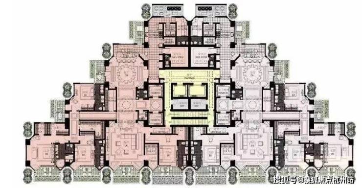 住宅户型呈金字塔造型,超大客餐厅,充分利用南向面宽,360°采光不浪费一丝一毫江景。