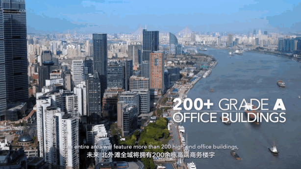 正如北外滩宣传片中所说:北外滩的新标志,是以财富管理为特色的金融产业。北外滩未来十年甲级写字楼数量将可以承载近百家国际型、地区型总部入驻,成为全球高端楼宇密集的区域之一。