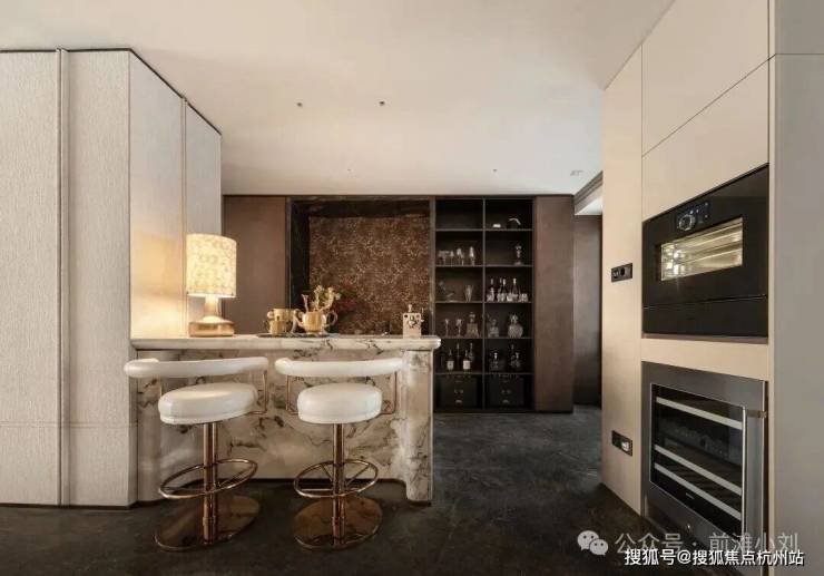 为一块奢石弧形工艺,投入翻倍的成本,整屋坚持用一种昂贵的木饰面贯通始终,从而实现整体艺术风格的统一。