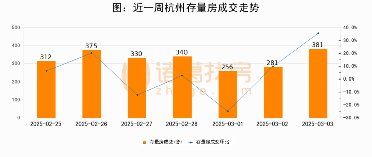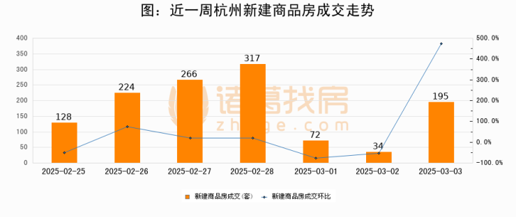 【杭州成交日报】03月03日新房成交195套、二手房381套;涨价房源52套