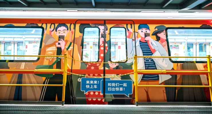 这两天,乘坐杭州地铁2号线的市民可能已经发现了,车厢“画风突变”,满满的像素风。