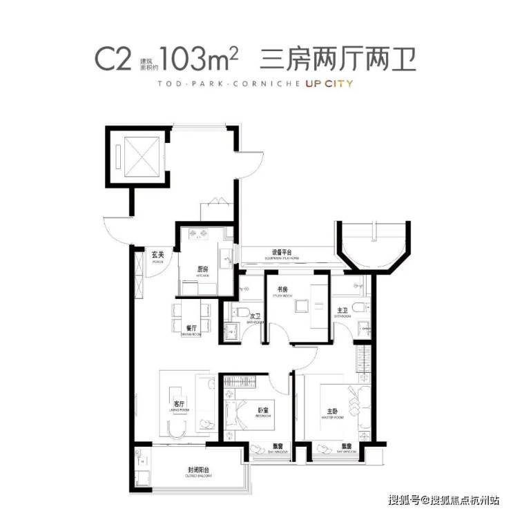 建面约103㎡3房2厅2卫▼