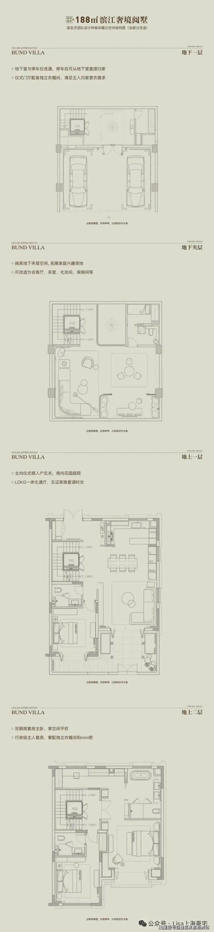 以约“全两层+会所”的形态革新、花园露台地下室的全维空间、大面宽短进深的奢适格局,重构别墅生活场景。