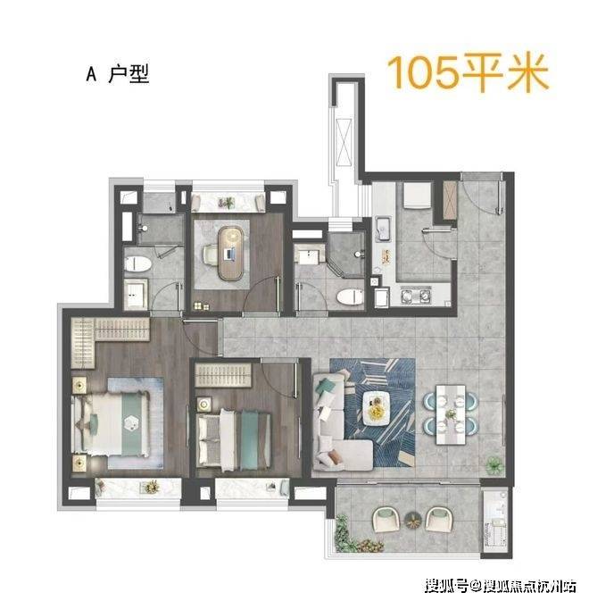 以99㎡三房两厅两卫户型为例,客餐厅连接景观阳台,采光面更大,为日常生活带来更多舒适感,双卫设计更为生活增添便利。105㎡三房两厅两卫户型,客餐厅与阳台一脉相连,居住空间感进一步扩大,约5.1米的宽厅,无论是日常休憩还是会客,都尽显大方得体。此外,项目中央空调、地暖、新风三大件配套齐全,且臻选大金等同级品牌空调地暖、老板和方太等同级品牌厨房配备、摩恩、弗兰卡、科勒等同级品牌卫浴配备,每一处细节都彰显着对居者的用心,为您打造高品质的居住环境。