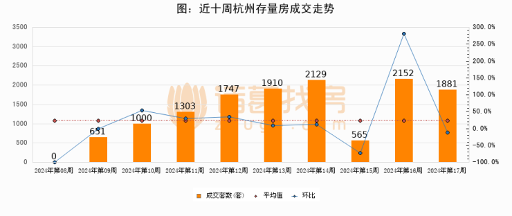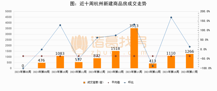 【杭州成交周报】第16周新房成交1266套,二手房1881套,涨价房源595套