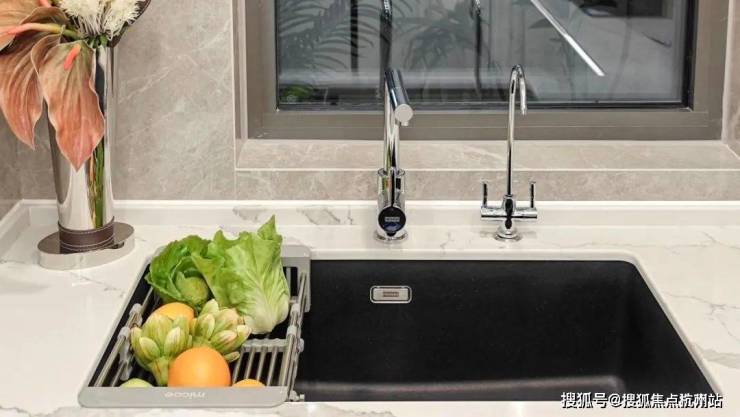 厨房空间,甄选西门子新款的抽油烟机、灶具、洗碗机等,甚至连大部分项目不配备的冰箱也是交付标准;还特别配置了轨道插座、前端净水器和凉霸;吊轨金属玻璃移门,既美观又方便清理。