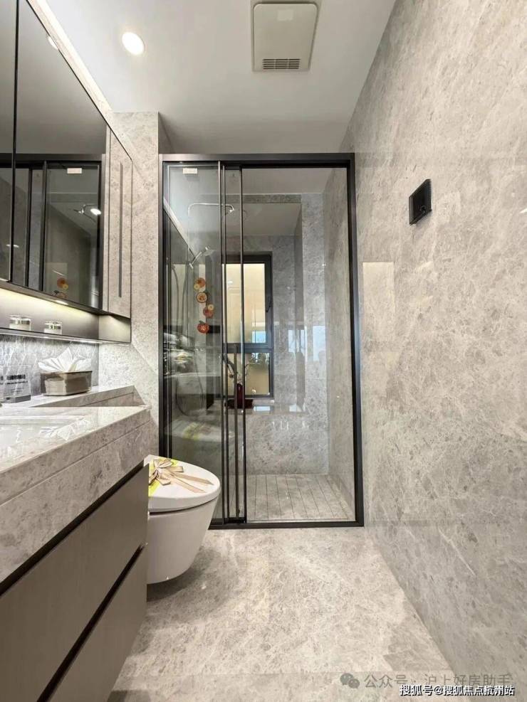 所有户型全屋墙纸交付,连电视机背景墙岩板以及主卧背景墙都是交付标准,卫生间甄选不同的石材,以此来满足功能区的需求。