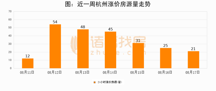 根据诸葛找房数据显示,杭州24小时涨价房源量为21套,较08月16日减少4套,环比下降16%。与此同时,涨价房源占比小幅回落,对于购房者来说是一个入市窗口期,购房者可抓住时机入市。