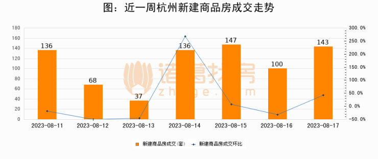 【杭州成交日报】08月17日新房成交143套、二手房158套;涨价房源21套