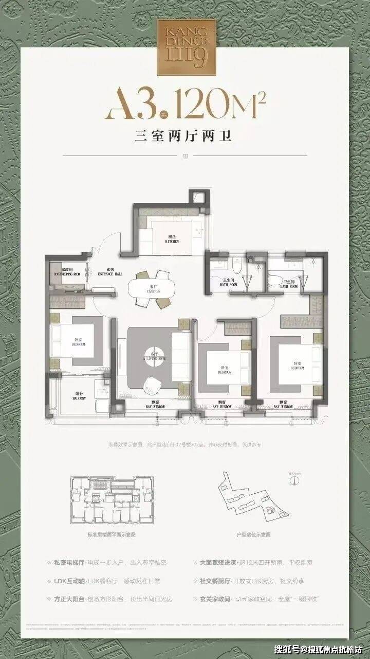 建面约120㎡三房户型,适配南北动静分区结构,是臻藏老静安资产的性价比之王;