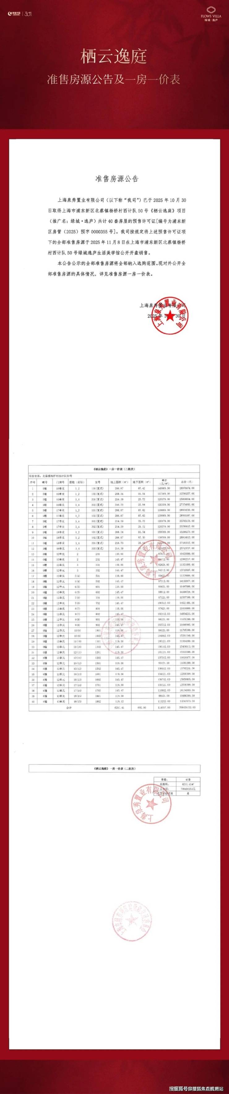 栖云逸庭|准售房源公告及一房一价表