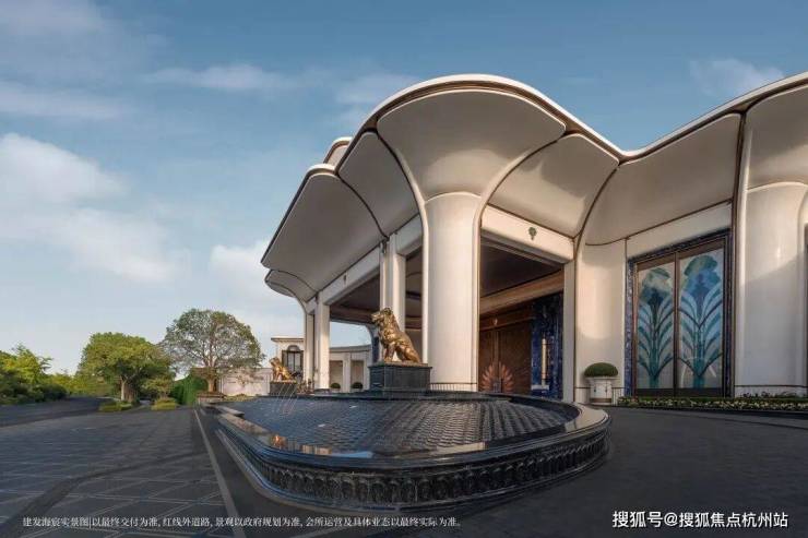以玉兰门庭—迎归大堂—莳花荟为主轴,敬献步履生辉的归家艺旅:玉兰门庭如繁花盛绽,尊华瑞鳞水景聚运生财,双尊铜狮镇守家宅;迎归大堂流转光影艺韵,百羽栖澜艺术雕塑、芦海宸韵非遗绣作流淌摩登气韵;莳花荟中央会客厅移步异景,献映会客、休闲等雅会。
