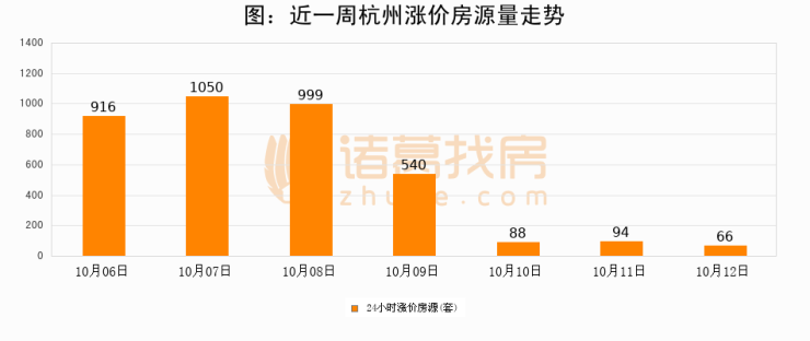 根据诸葛找房数据显示,杭州24小时涨价房源量为66套,较10月11日减少28套,环比下降29.8%。与此同时,涨价房源占比小幅回落,对于购房者来说是一个入市窗口期,购房者可抓住时机入市。