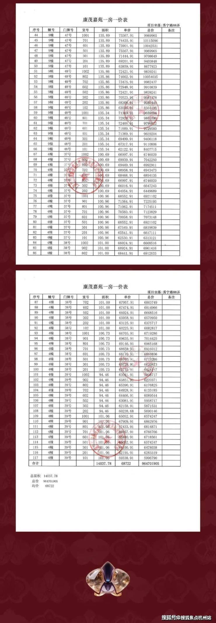 一房一价表: