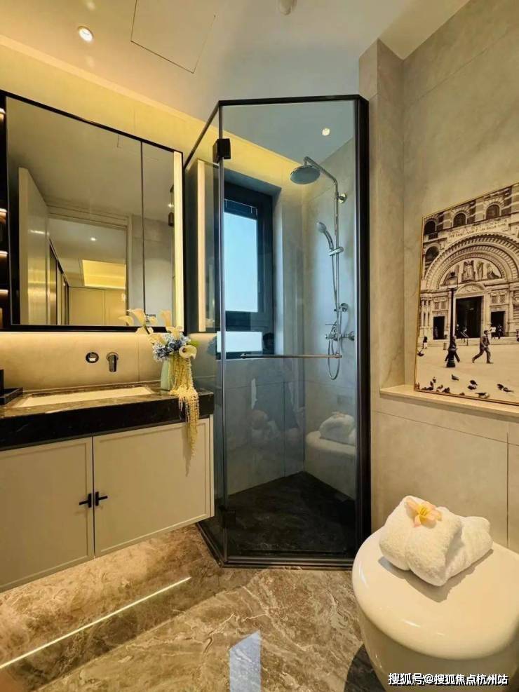 而人行线路则由星级酒店式的入户大堂进入,接着便是6S会所环绕的下沉式水景庭院,约7米高磅礴大气的水景墙配合乌桕林和原石、浮桥交错的地面水景,若是傍晚归家,还能欣赏倒映在水中的点点星光,可谓满满的奢雅意境和尊贵仪式感!