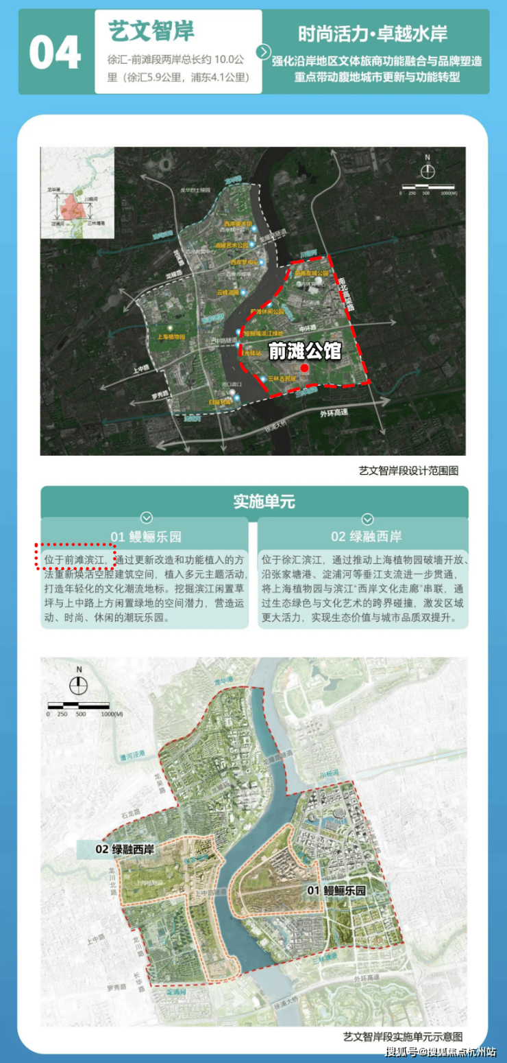 二、滨江价值加速兑现。随着最新黄浦江单元规划细节发布,前滩滨江与徐汇滨江将共同组成“艺文智岸”,滨江价值升级!规划打造的运动、时尚、休闲的滨水潮玩地标(来源上海发布)。