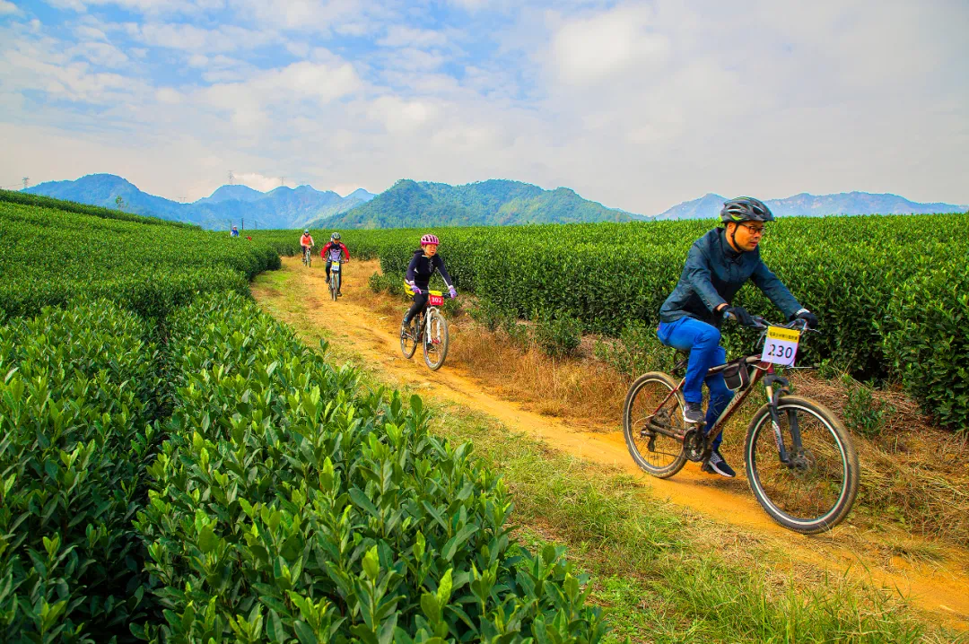 富阳“茶艺小镇”春建乡以骑行为媒,开辟万亩茶海风情道,每年都有来自全国各地的骑友汇聚在此骑游观光。