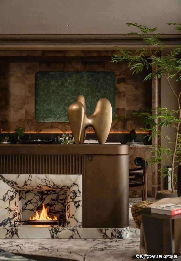 而且这个空间的装标也是非常精致的,1.7米双扇铸铝门,搭配宝格丽石材与祥云灰拼花,延伸至电梯厅!皇家白玉石玄关,兼具储物与展示功能,质感温润!