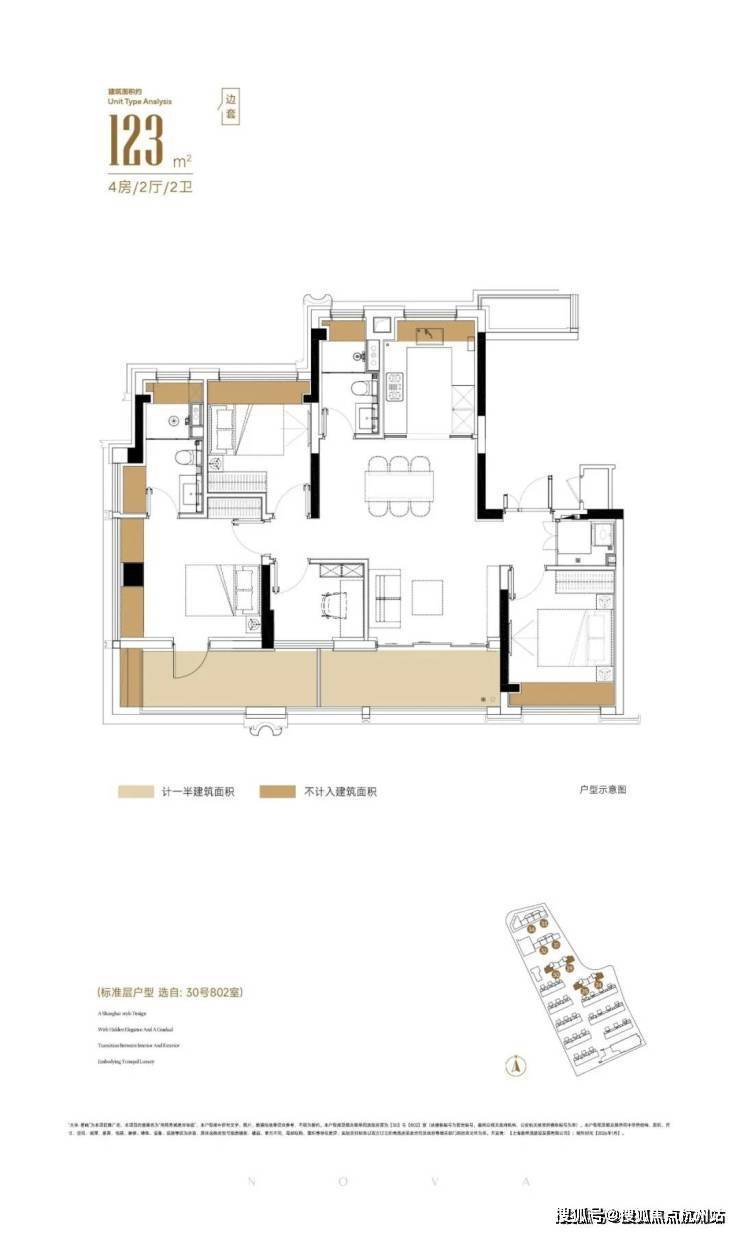 项目建面约123㎡户型则是区域内仅有同面积段宽厅4开间朝南4房南北通透户型,附赠面积高达约17.6㎡,无论是在使用功能上和尺度上,都远超同面积段其他户型。