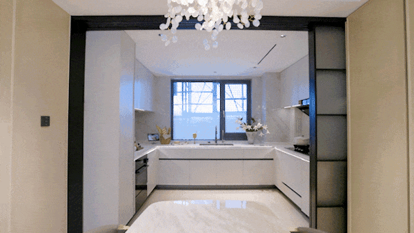 厨房与餐厅采用开放式布局,U型台面让洗-切-炒动线形成闭环,洗菜区、备餐区、烹饪区呈三边分布,形成高效洄游路径!