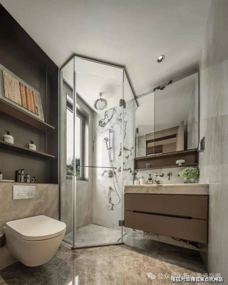 卫生间的部分严选杜拉维特的台盆、壁挂智能马桶、高仪的龙头、淋浴花洒等一系列高端品牌;主卧的卫生间更是配备了美妆冰箱、魔镜等配置,相信没有哪个女生能够拒绝。
