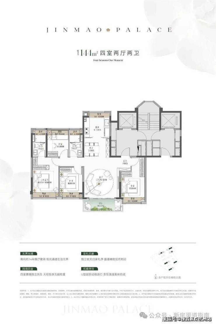 ● 建面约144㎡4房:同价格在杨浦只有百平米3房可选。