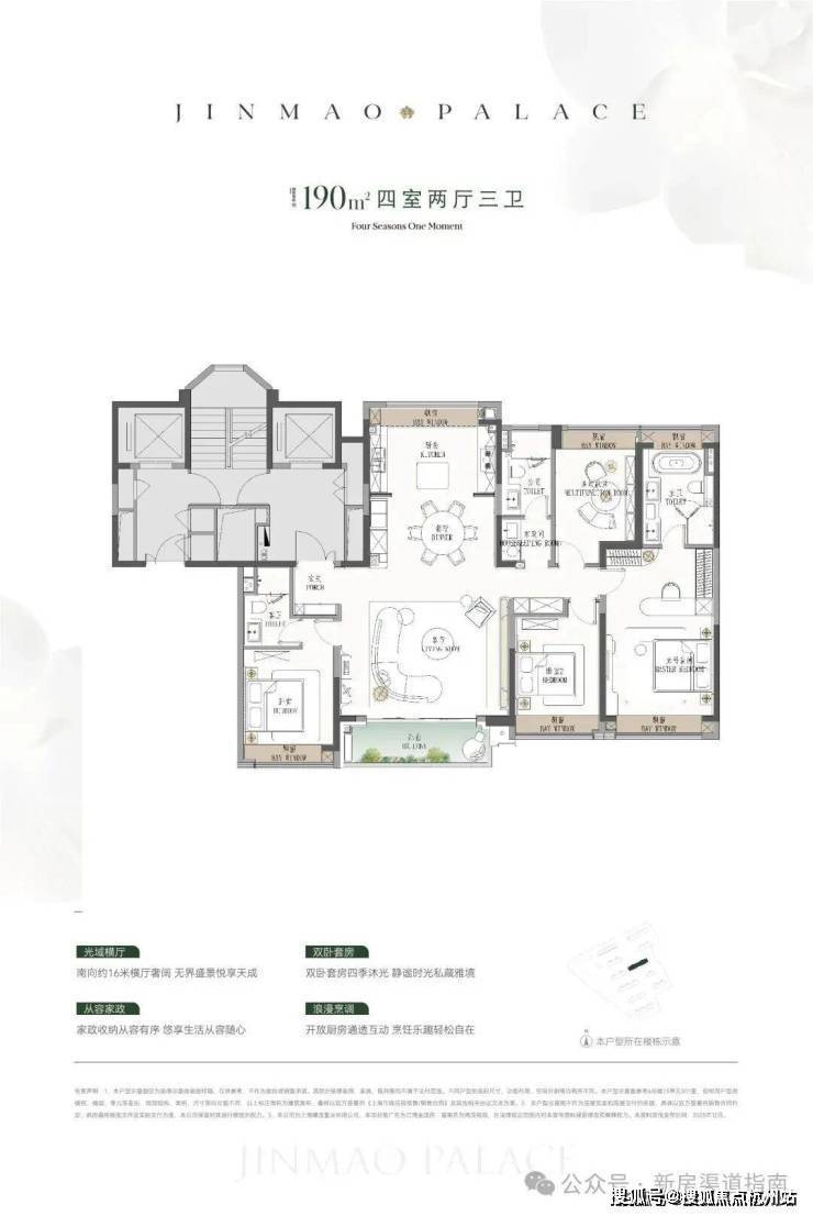 ● 建面约190㎡4房:楼王位置的顶奢大平层,同价位段在杨浦只能买到约120㎡3房!