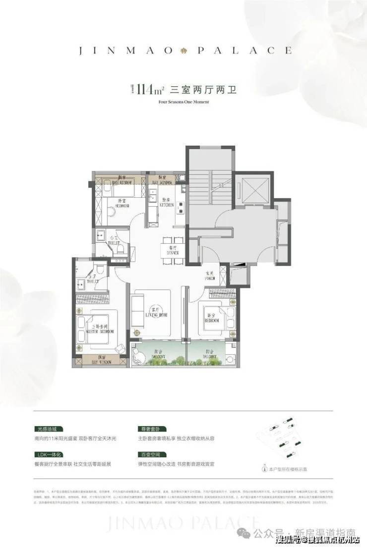 ● 建面约114㎡3房:低总价上车首选,闭眼可冲。