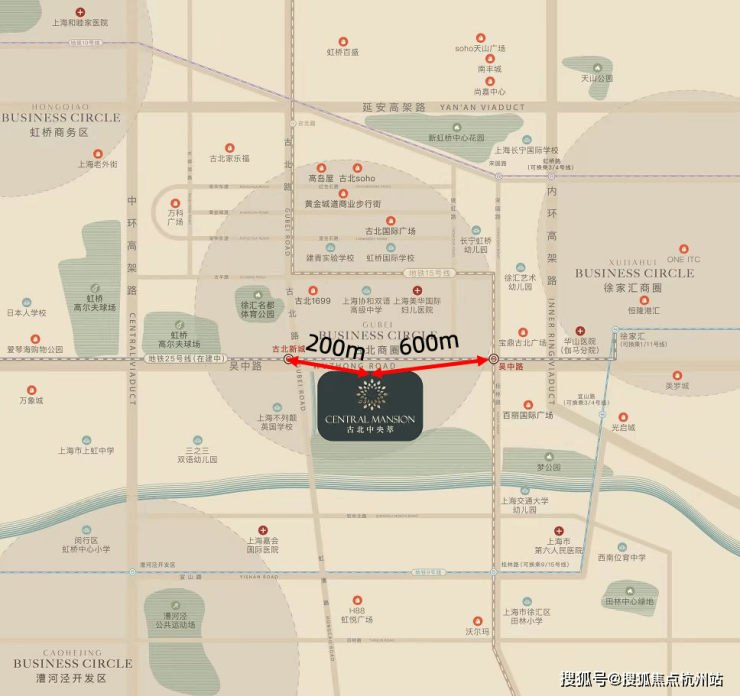 古北中央萃是纯正地铁盘,双轨交环绕!与15号线吴中路站直线距离仅约600米,与25号线(部分在建)古北新城站直线距离仅约200米。