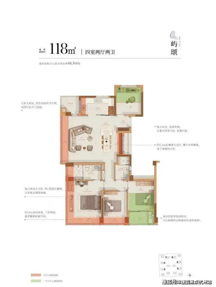 沐芳洲主力户型建面约89-132方,最高实际得房率达到100%,是目前杭州得房率最高的新盘之一。