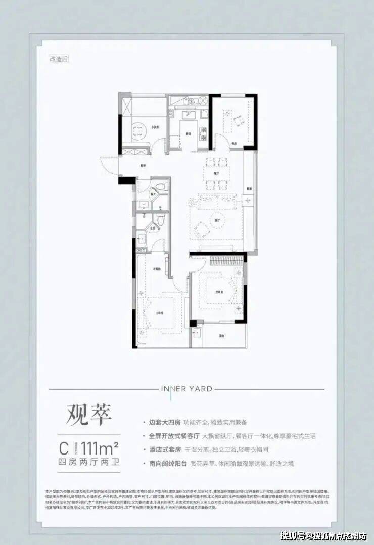 建面约111㎡竟然做到了四房!比市面上主流四房面积少了10多个㎡,却丝毫不输尺度。