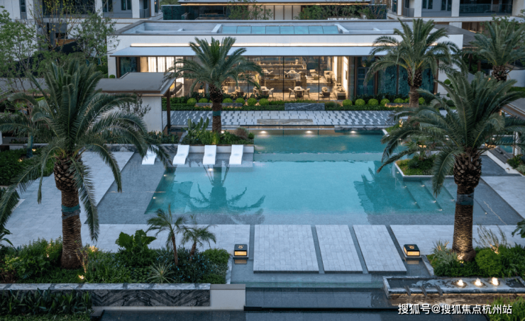 下楼入园。双水系热带景观园林已经实景呈现,加拿利海枣树在泳池边摇曳生姿。周末下午,孩子在浅水池边看鱼,你在林下的长椅上翻几页书,阳光透过树叶洒下斑驳光影。这不叫度假,这叫日常。