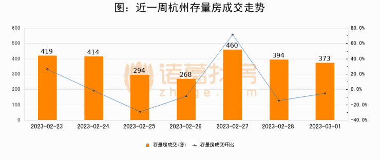 【杭州成交日报】03月01日新房成交231套、二手房373套;涨价房源174套