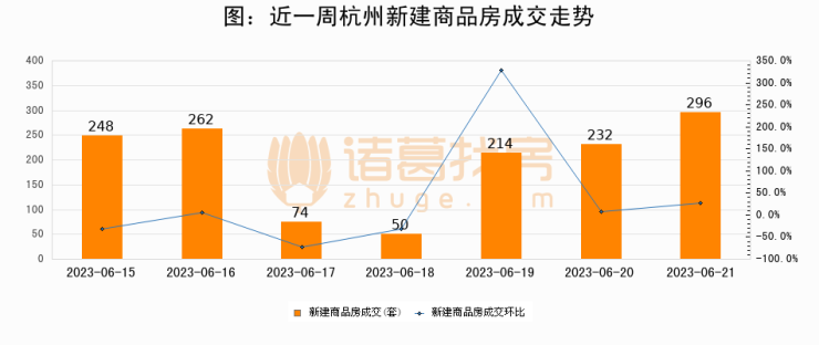 【杭州成交日报】06月21日新房成交296套、二手房167套;涨价房源380套