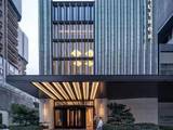 建筑外立面以大面积玻璃与咖色铝板为主,搭配蓝色铝板线条,色调典雅高贵;底部以暖棕色石材为主,大量石材倒圆弧工艺让建筑多了一份温润质感。