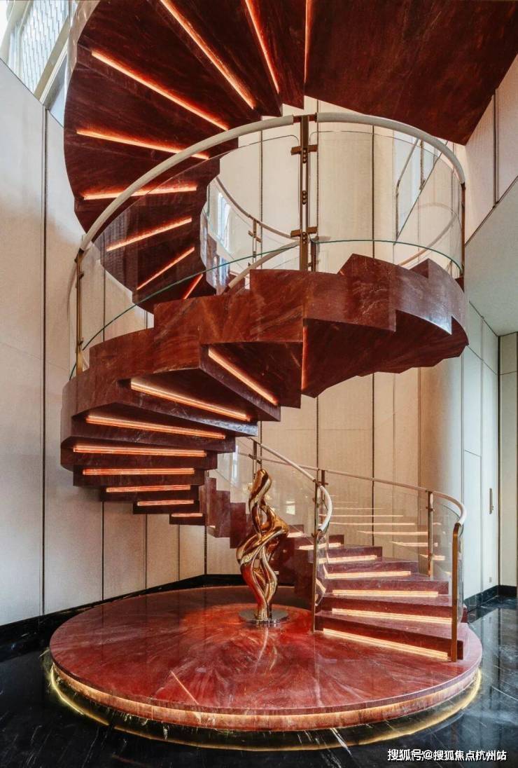 艺术楼梯“繁花之阶”,是串联起地下会所和地面架空层的空间纽带,增加不少会所漫步的闲趣。