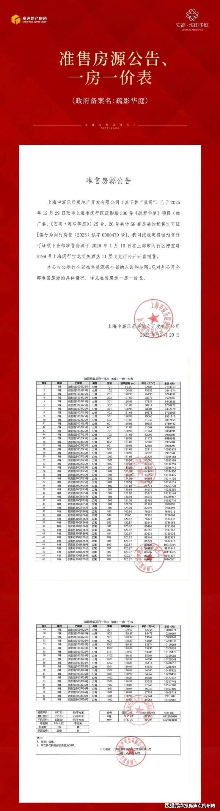 闵行莘庄「安高·海印华庭」建面约119-143㎡户型,附官方预约热线!